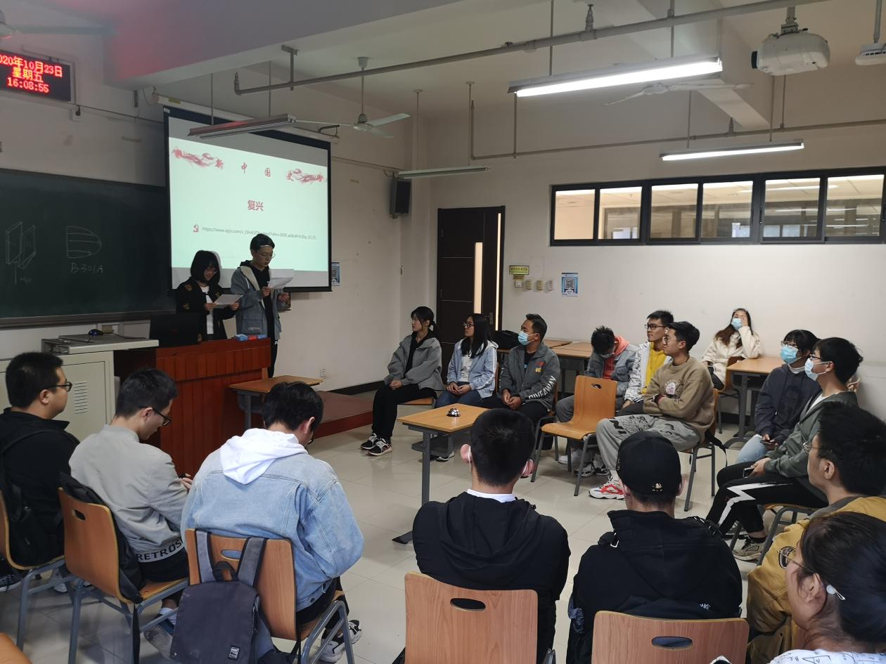 为加强同学们对习近平主席提出的“四史”文化的认识与理解,能材1801班于主B321举行了一场主题为:“坚定‘四史’信念,传承‘四史’精神”的别开生面的班会。在对“四史”理论做简单介绍后,进入对“党史”的深入学习。同学们统一观看一段影像资料,回顾中国共产党艰辛的建立与发展史,重温中国共产党人为祖国做出的伟大贡献,铭记革命先烈为党付出的惨烈牺牲。陆一和张怡爽两位同学为同学们讲述了革命故事,让我们在与士兵同甘共苦的朱德、留半条皮带走完长征的周广才、飞夺泸定桥的勇士身上领会革命的艰险与革命先烈的英勇。随后,进入对新中国史的深入学习。观看了一段新中国成立以来国家微观变化的纪录片以后,同学们对新中国的发展赞叹不已,感慨中国共产党为祖国创造的未来,怀揣这样敬畏,殷小净与叶海洋为同学们带来了一场激情澎湃的诗词朗诵,字里行间,激励、鼓舞着在场的每一位同学。紧接着进入对改革开放史和社会主义发展史的深入学习。大家通过观看视频资料,了解改革开放,了解社会主义发展,进而更好地了解自己“明初心,担使命”的社会责任。随后,蔡倩倩为同学们讲述了新时代的榜样人物故事,让肩负重大社会责任的我们以人为镜,树立正确的世界观,争取为新时代的中国锦上添花。最后,为检测大家班会学习的效果,进行了一场紧张又精彩的“四史”知识抢答大赛。全班同学分为五组,在主持人给出题目后自由抢答;同学们摩拳擦掌,各显神通,展示了一场思维与肢体并重的速度竞争;一时间,欢声、笑语、掌声此起彼伏,竞赛的紧张被化解为团队的欢乐。随着压轴题的结束,主持人公布了小组得分,而比赛失利的小组得到了歌唱祖国的“惩罚”,和着“我和我的祖国”悠长的歌声,主题班会步入尾声,相信这样一场生动的班会,同学们不仅学到了知识,也获得了更强的班级凝聚力。