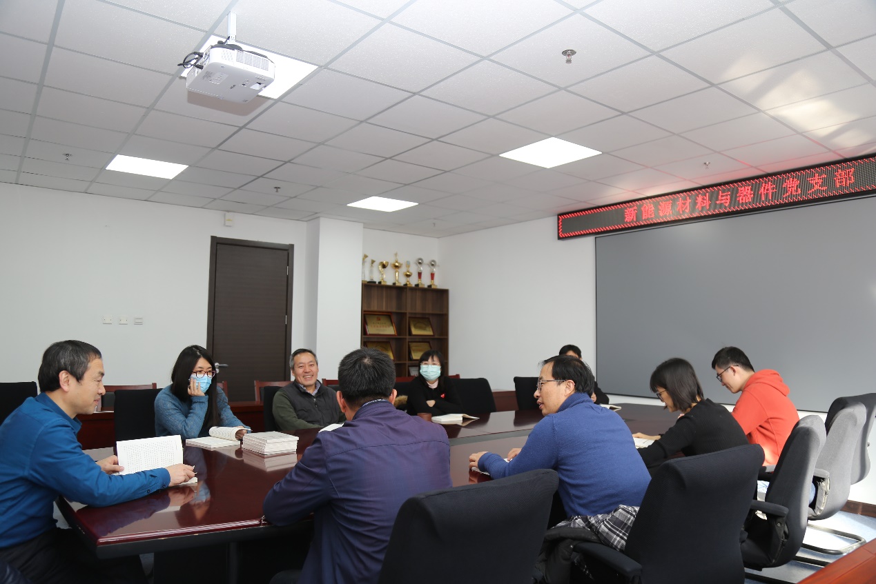2020年12月23日中午,新能源材料与器件教工党支部在会议室开展2020年12月党员日活动,组织开展了关于新能源行业发展和学生培养的讨论。会议由新能源材料与器件党支部书记李英峰同志主持,全体教职工党员参加专题学习讨论会。