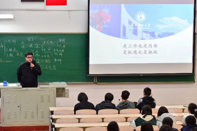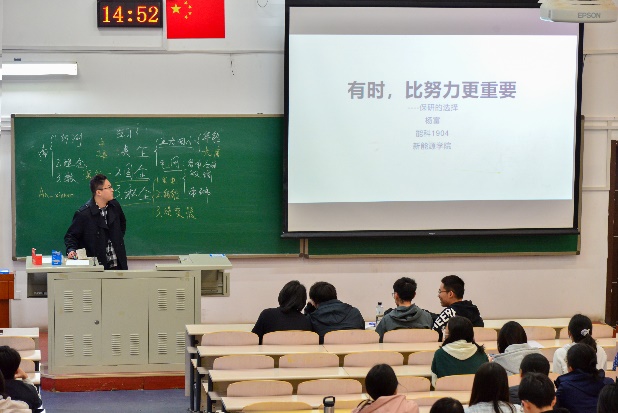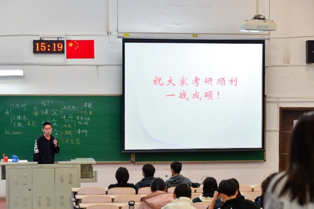 首先,杨子发老师向同学们介绍了学院三个研究生专业,以及近三年学术型硕士、专业型硕士的录取人数与录取分数线等情况,结合当前就业形势,鼓励同学们积极思考、勇敢尝试,结合自身实际情况,明确发展规划,在未来的求学或职业生涯中既要仰望星空,也要脚踏实地。