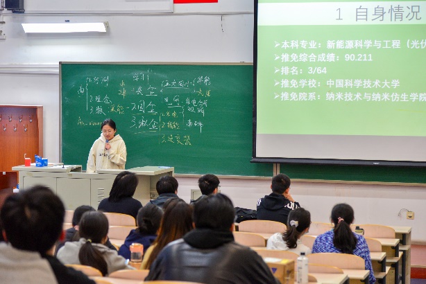 能科1904班杨富、程琳瑞分别就保研本校与外校的区别和注意事项做了详细介绍,他们从保研资格、夏令营和预推免、选校择师和科研竞赛等方面展开分享,鼓励同学们磨砺以须,为保研打下厚基础和硬实力。