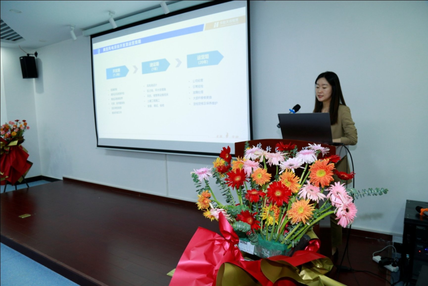 第三位报告人延平,是2014级可再生能源与清洁能源专业的硕士毕业生,现为华能天成融资租赁有限公司风电金融业务部高级经理,从事风电行业政策研究、细分市场分析、综合金融方案设计等工作。她带来的报告题目为:新能源项目从开发到运营。延平从一个风电场建设的前期准备、中期建设及后期运行三个方面所涉及的实际工作内容和困难出发,为师生们介绍了自己在校期间所学知识在工作中的应用。