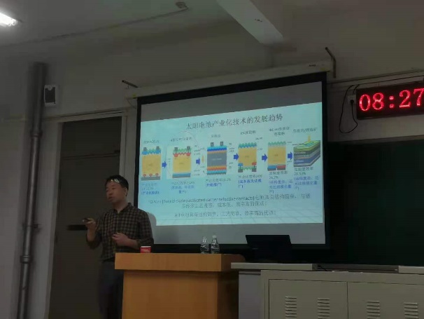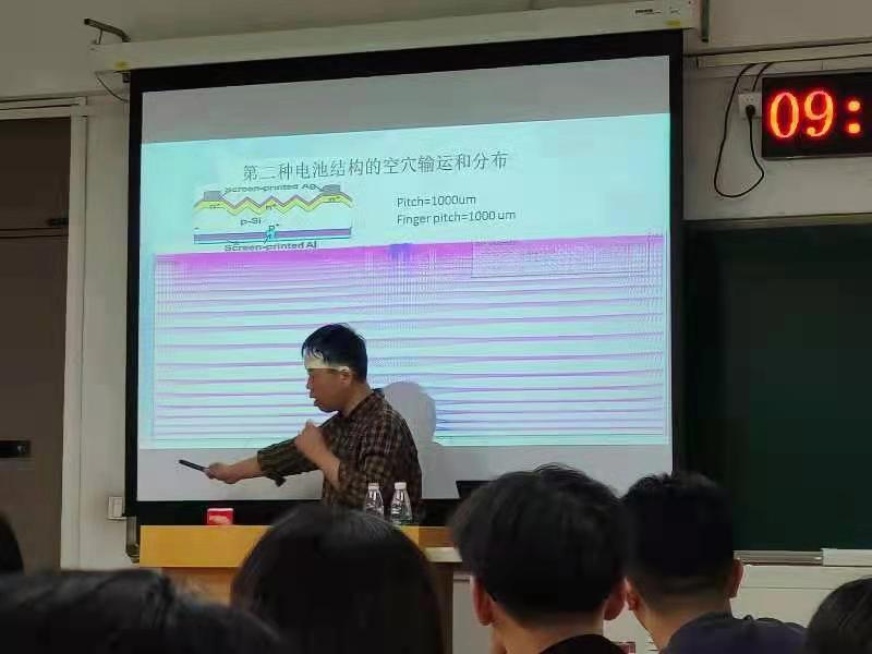 2021年5月28日,中国科学院微电子研究所贾锐研究员应李美成院长邀请,来我校为九妖漫画 师生做新能源器件制备技术与应用的专题课程讲座。贾锐研究员以高效晶硅太阳电池研究为主题展开,从五个方面详细地介绍了晶硅太阳电池的物理基础、产业化技术和未来光伏的发展趋势。贾教授精彩的讲解,让九妖漫画 师生对高效晶硅太阳电池的前沿技术和光伏发电行业的发展趋势有了更加深刻的理解。师生也针对一些问题与贾教授展开了互动与讨论,本次专题课程在热情的探讨与交流中圆满结束。