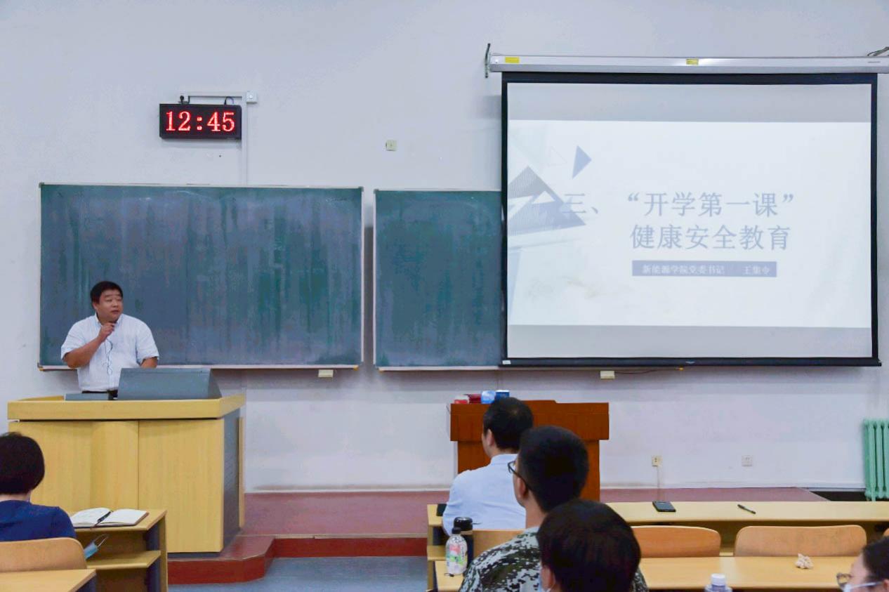 学院党委书记王集令以健康安全教育为主要内容讲授了开学第一课,他结合学校疫情防控政策,要求全体同学充分认识疫情防控工作的极端重要性,切实做好个人防护,养成良好生活习惯,在疫情防控工作中彰显责任感。他希望全体新生紧密围绕国家碳达峰、碳中和“3060”战略,认真学习,勇于实践,敢于担当,立志为中华民族第二个百年奋斗目标贡献力量。