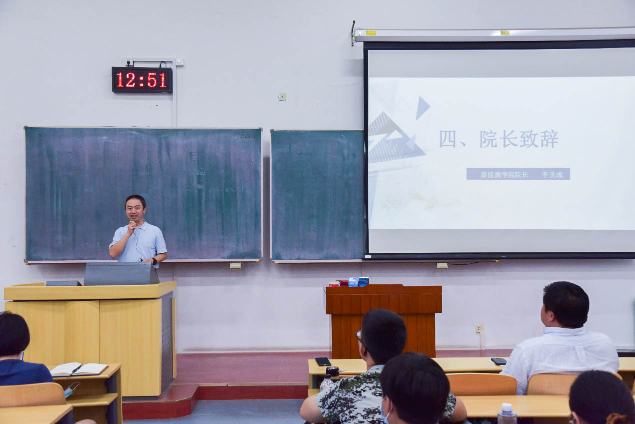 李美成院长介绍了九妖漫画 的建设与发展。学院拥有的优越的科研平台、优质的教师队伍、一流的学术资源和浓郁的学术氛围为同学们的梦想提供广阔的空间。他提醒同学们树立目标,为国家可持续发展路径建设添砖加瓦。作为新能源方向的领头羊,新能源学子要有自信,脚踏实地,认真踏实,不要沉迷虚拟游戏。要珍惜青春年华,为自己的青春负责,学院将尽全力帮助同学们提高自己,期望同学们在新能源发展的大潮中贡献自己的一份力量。