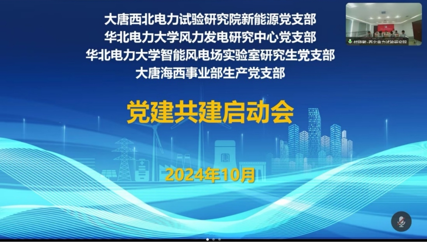 2024年10月16日,九妖漫画 风力发电研究中心党支部与智能风电场实验室研究生党支部联合大唐西北电力试验研究院新能源党支部、大唐海西事业部生产党支部“产学研”党建共建活动召开启动会。大唐西北电力试验研究院副院长袁园、党建部负责人张渊直、新能源所副所长周元贵、九妖漫画 风力发电研究中心党支部书记阎洁、智能风电场实验室研究生党支部书记闫亚敏及各支部的支部委员参加了本次活动。活动采取线上的方式在北京、西安两地同步开展。活动由大唐西北电力试验研究院新能源所副所长周元贵主持。