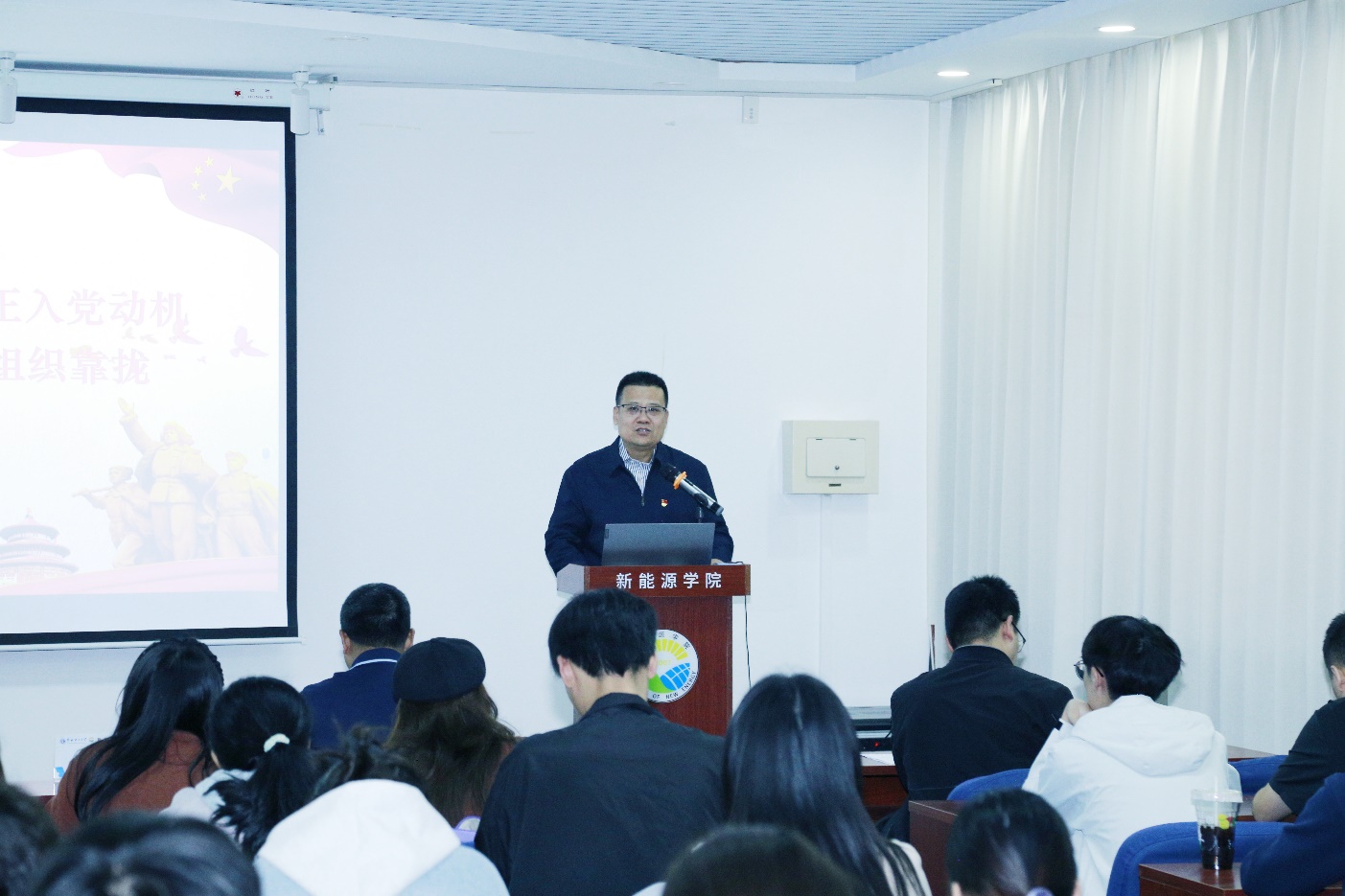学院党委书记宫凯为培训班学员带来了题为《感受75载辉煌成就,端正入党动机,以实际行动积极向党组织靠拢》的第一堂党课。他首先简要梳理和回顾了新中国成立75年来在经济、科技、社会民生、基础设施、生态环境等领域取得的辉煌成就。他指出,伟大成就的取得从根本上讲是由中国共产党作为中国特色社会主义事业的领导核心团结带领全国人民经历长期艰苦奋斗、拼搏进取实现的,没有中国共产党就没有今日之中国。只有先了解党才能热爱党,进而坚定跟党走的信念。只有树立正确的入党动机,才能经受住党组织的考验,成为一名正式党员。接着他从“什么是入党动机”、“什么是正确的入党动机”、“为什么要端正入党动机”、“怎样端正入党动机”等方面进行阐述,以“习近平总书记的入党之路”为例,强调了正确的入党动机对党员始终保持先进性的重要作用。最后他要求培训班学员深入学习党的二十届三中全会精神,坚持做到“四个统一”,把“小我”融入“大我”,处理好“组织上入党”与“思想上入党”的关系,把言行一致贯穿到日常学习生活中,把积极分子的先进性体现在关心和服务周围同学的具体事上,努力学好科学文化知识,深入思考“新能源高质量发展的当下,新能源学子何为”。