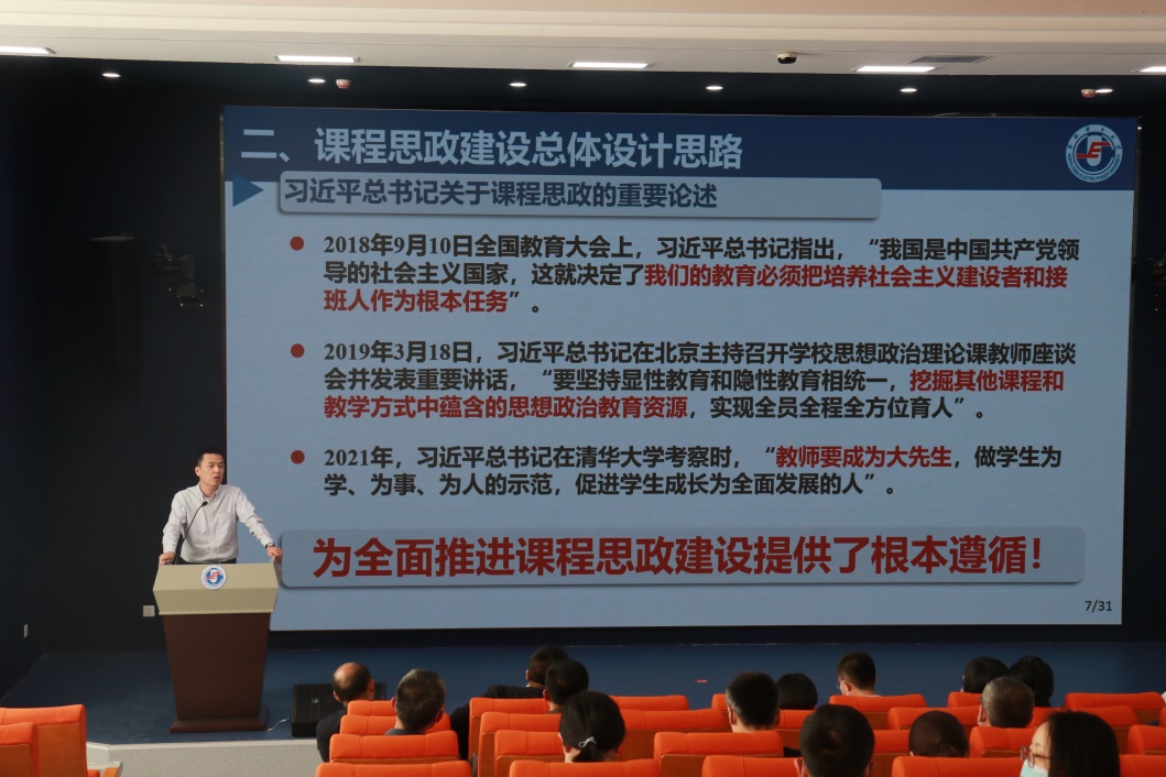 侯丹娟副教授围绕“课程思政的本质内涵、价值意蕴与实践路径”分析了思政课程与课程思政的不同,对专业课教师开展课程思政提出了两大要求,阐述了课程思政建设的三大原则和课程思政教学实践的五步法。