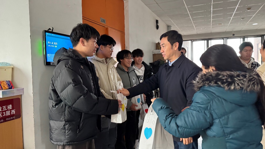 李美成为同学们送上礼物的同时,了解同学们的复习情况,鼓励大家调整好状态,按部就班地进行复习备考。同时也谈及长远的国际视野及国家“一带一路”倡议下的新能源建设,鼓励同学们把握机遇,展现风采,为学院争光,为国家新能源事业贡献力量。他寄语同学们要相信自己的实力,勇往直前。
