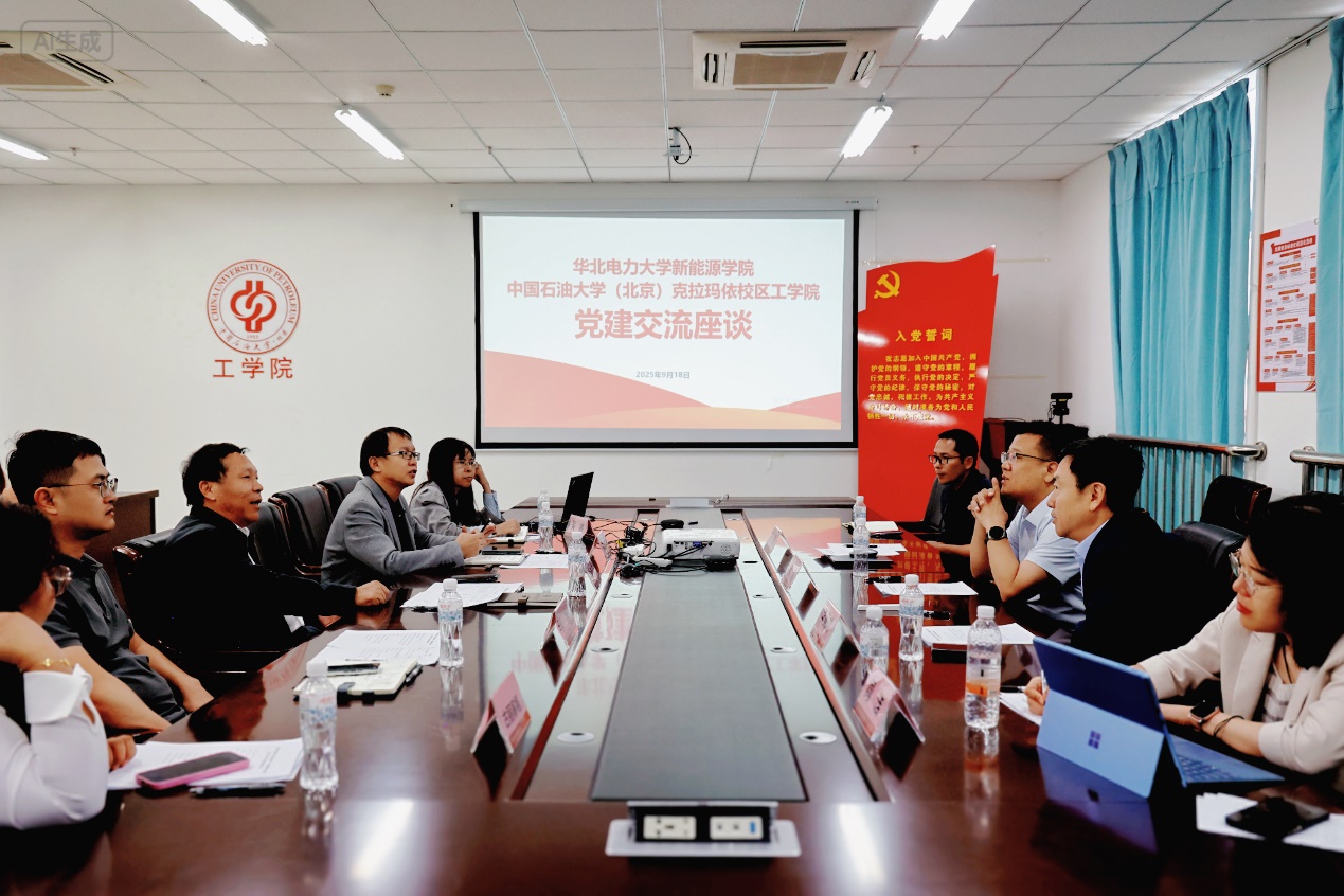 参观结束后,双方举行座谈。工学院党委书记谢庆斌、院长魏强等班子成员和教师代表参加。谢庆斌书记详细介绍了工学院在学科专业建设、特别是克服困难培养扎根西部能源人才方面的探索与实践。机械与过程系党支部重点分享了全国样板支部培育创建单位的工作经验。李美成院长介绍了九妖漫画 的办学特色以及在我国新能源专业领域的带动作用,并回顾了此前两院多次线上联学联建所结下的深厚情谊。双方围绕新能源专业课程共建、实践教学资源共享、学生理想信念教育、党建引领育人等话题展开了热烈讨论,就进一步推动师资交流、学生互访和科研协同达成了多项合作意向。